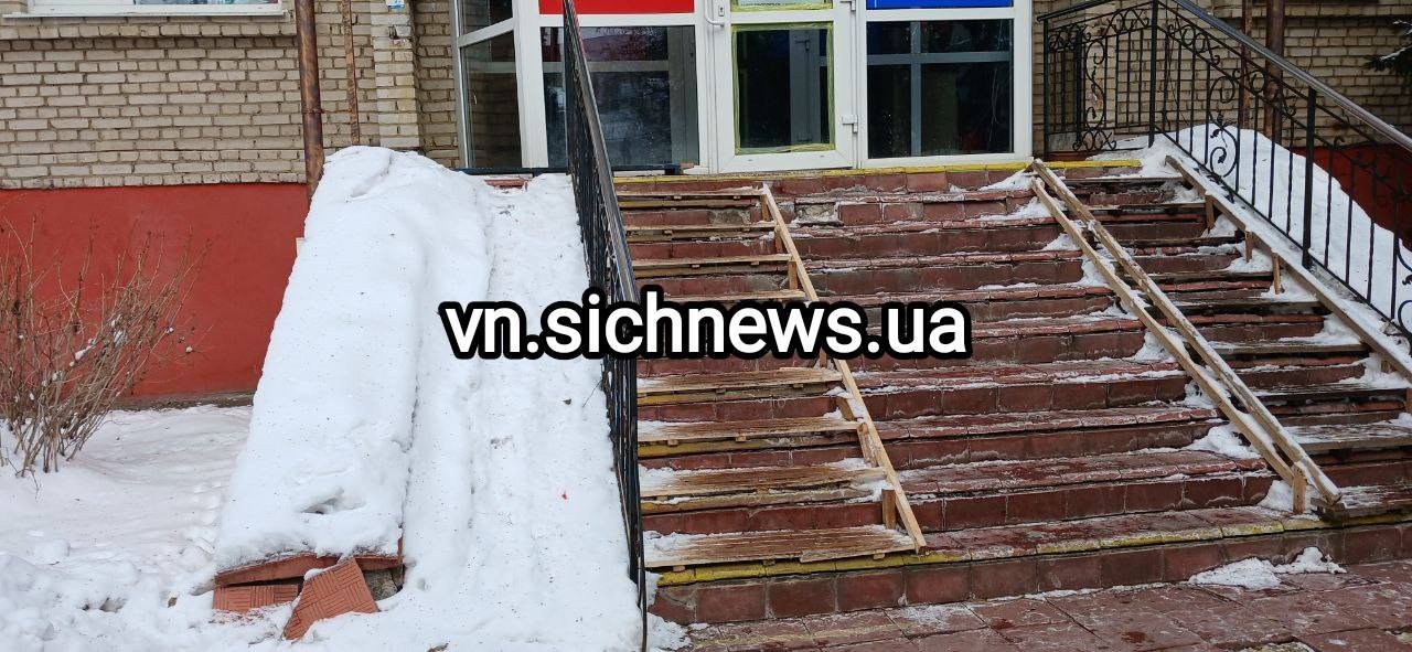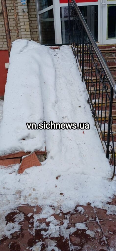 Неприємно вражає й інше. Зараз сходи до будівлі почистили від снігу, а пандус – забули. Він покритий льдом, тож по ньому проїхати на кріслу колісномсу  неможливо.