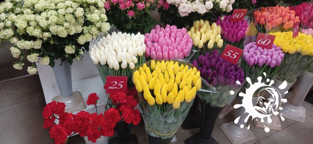 Як виявилося, тюльпани нині коштують 55-60 гривень за екземпляр, троянди – від 60 до 150 (в залежності від сорту і розміру квітки). Пакування у звичайну плівку – безкоштовне, а ось гарне пишне оформлення –  200 гривень. В наявності, зрозуміло, є й готові великі букети троянд і орхідей. Їхня вартість сягає 700-1000 гривень.