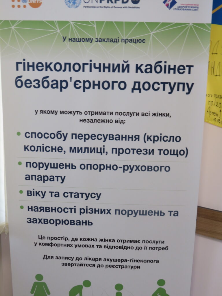 Приміром, на базі жіночої консультації міського пологового будинку № 1 Вінниці облаштовано гінекологічний кабінет безбар’єрного доступу. Це зробили за кошти донорів, серед яких є фонд народонаселення ООН у галузі «Здоров’я жінки».
