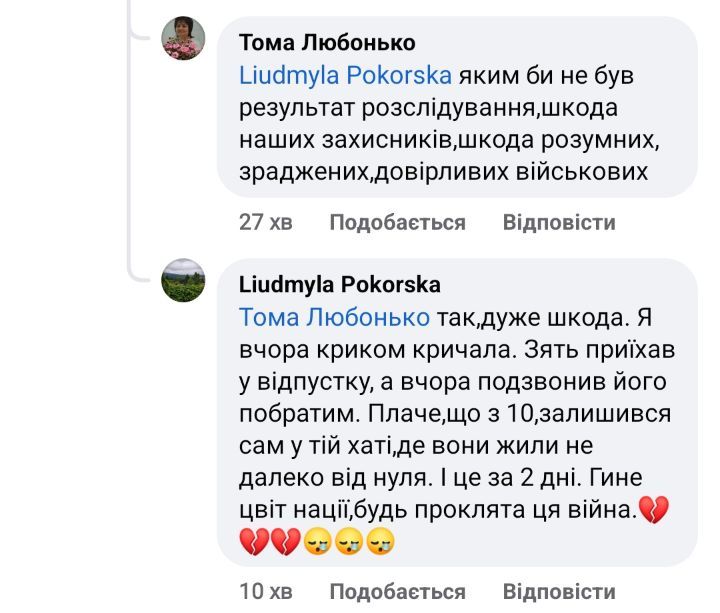 Водночас в коментарях можна натрапити на різні думки, зокрема, й вінничан. Хтось досі плутається в догадках про справжні причини загибелі, хтось проявляє щирі співчуття. Інші ж пишуть про зачистку перед виборами та необхідність захисту головнокомандувача Залужного. Оскільки досі немає версії, яку можна було б визначити як остаточну, дискусії та здогадки продовжуються.