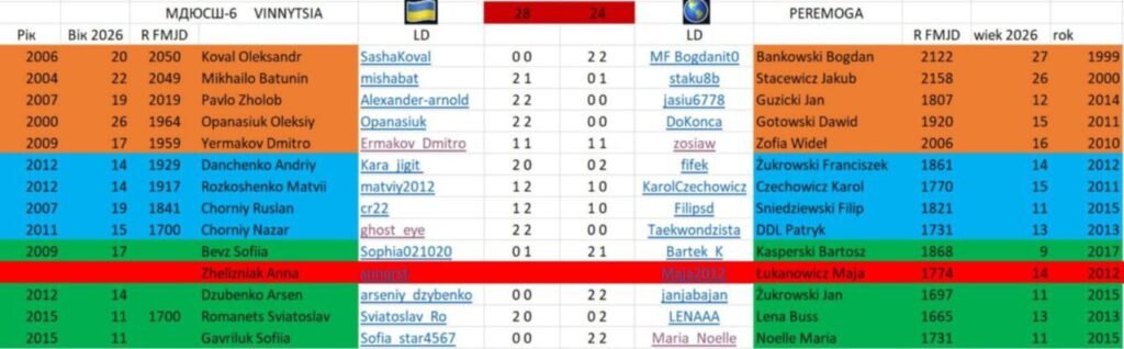 Вийшло зіграти на 13 дошках замість запланованих 14. Ми виграли матч дружби із рахунком 28:24. Деякі наші учасники підтвердили свій високий рівень, інші гідно змагалися. Але всі підтримали тренера і показали, що ми є і ми боремося. Це Павло Жолоб, Олексій Опанасюк, Назар Чорній, Михайло Батунін та інші спортсмени, – сказав наставник вінницької команди, заслужений тренер України Дмитро Мариненко.