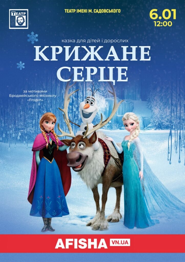 Дивовижна вистава «Крижане серце» за мотивами культового бродвейського мюзиклу «Frozen» і знаменитого мультфільму Disney у Вінниці!