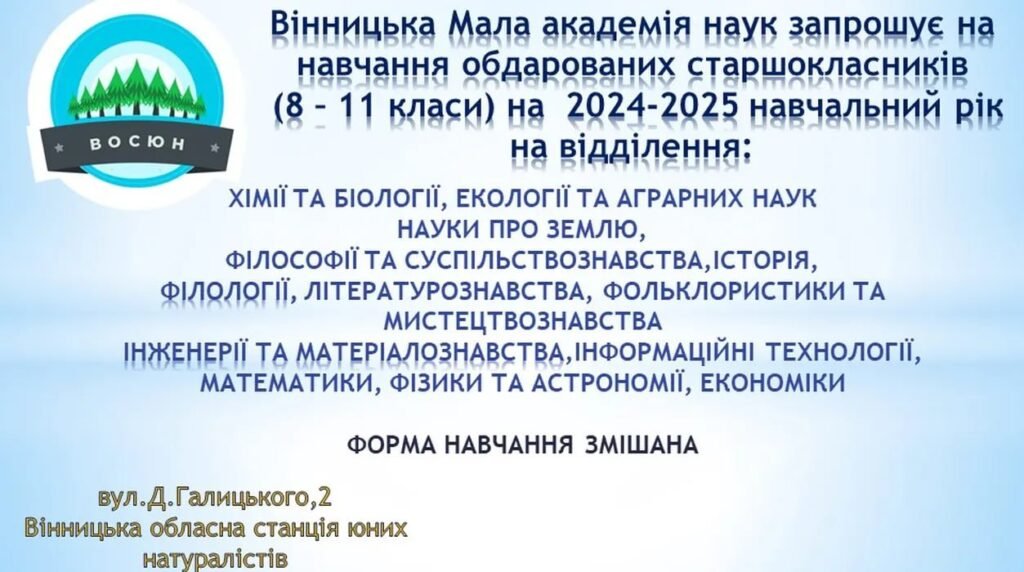 Здібних старшокласників Вінниччини запрошують на навчання до Малої академії наук